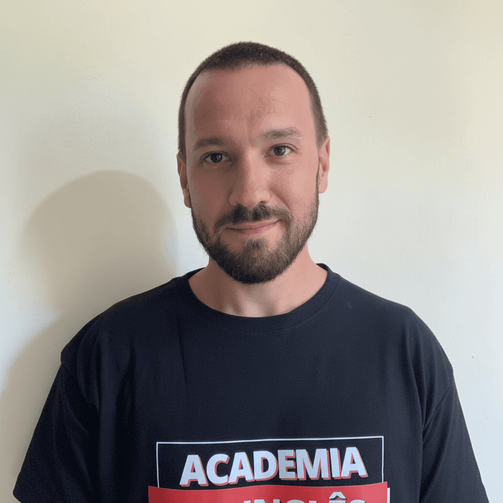 Fundador da Academia do Inglês e professor de Inglês com 10 anos de experiência comprovada no ensino. Ex-coordenador pedagógico da Wizard by Pearson, desenvolveu estratégias que elevaram o desempenho e a confiança dos alunos.